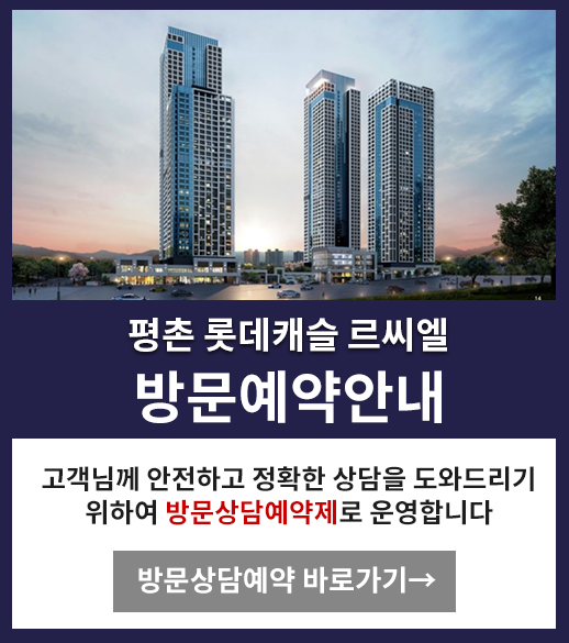 평촌 롯데캐슬 르씨엘 방문예약 고객의 개인정보를 수집합니다. 수집한 개인정보는 방문예약 이외의 목적으로는 사용하지 않으며,모집 기간 완료 후 즉시 파기합니다. 개인정보의 수집 및 이용에 대한 동의를 거부할 수 있으며, 이 경우 방문예약 접수가 어려울 수 있습니다.